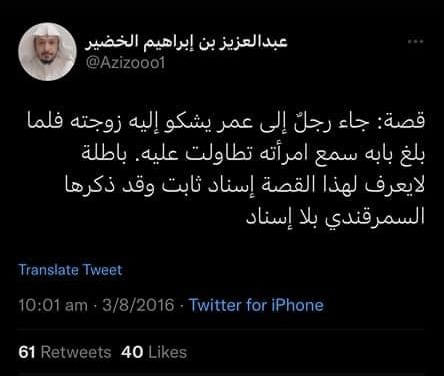 Ibn Muflih sa: ”Det som Ahmad [ibn Hanbal] har återberättat i al-Musnad [1], utan att uttryckligen nämna något som går emot det, räknas det då som hans åsikt? Det finns en meningsskiljaktighet bland följeslagarna (dvs de hanbalitiska lärda) om detta, men det mest framträdande är att han inte motsätter sig det.” (al-Ādāb al-Shar’iyya, 1/58) Slutciterat från Ibn Muflih. [2]